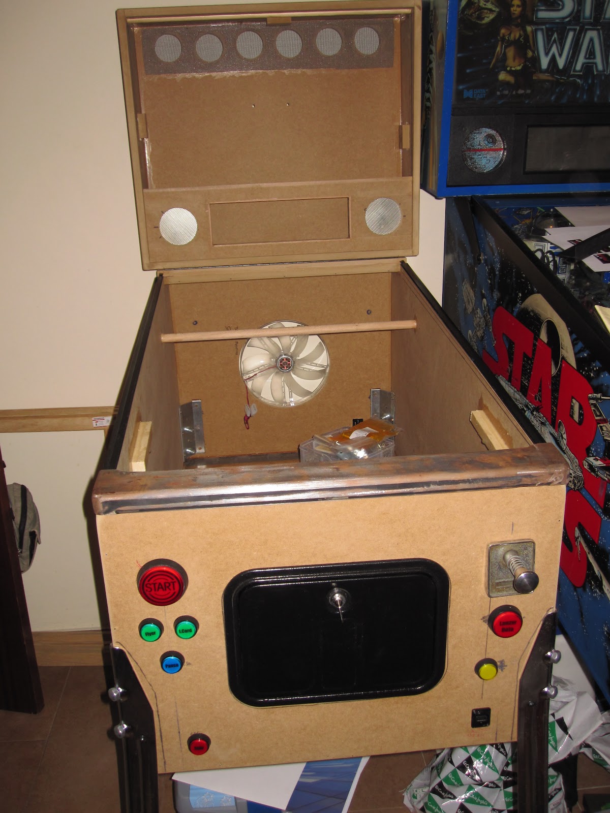 He decidido desde cero construir un mueble a medida para un 37" y reciclar muchas piezas de pinballs reales... dejo fotos de los comienzos...